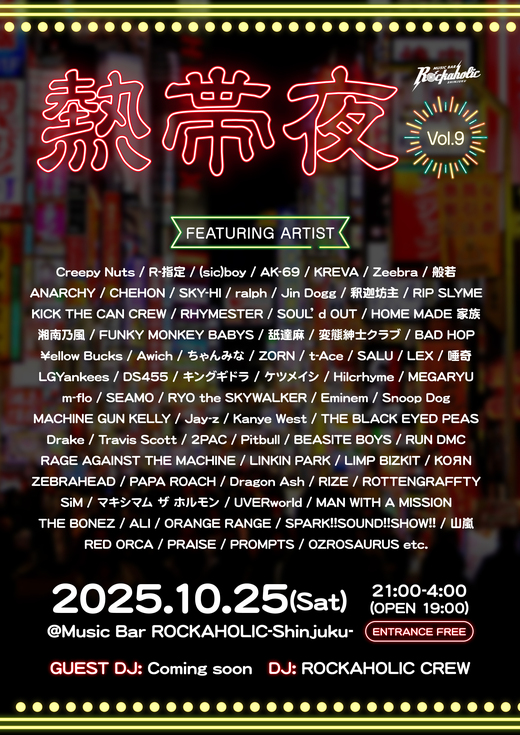 Creepy Nuts / R-指定 / (sic)boy / AK-69 / KREVA / Zeebra / 般若 / ANARCHY / CHEHON / SKY-HI / ralph /